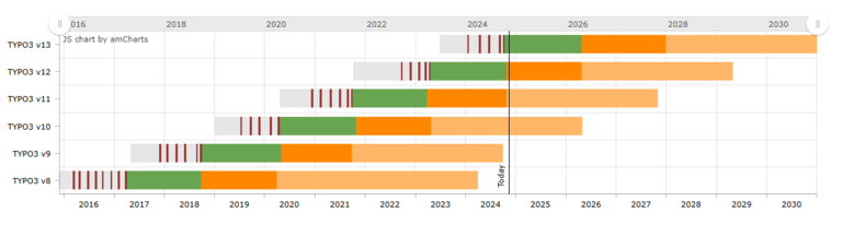 Die TYPO3 CMS Version 13 ist das neueste LTS-Release. Sie bietet nicht nur erhebliche Geschwindigkeitsverbesserungen, sondern auch einen intuitiveren Workflow für tägliche Aufgaben, dank Funktionen wie einem anpassbaren Backend, erhöhter Sicherheit und fortschrittlichen Content-Management-Tools. TYPO3 v13 LTS bietet Langzeitunterstützung, wobei regelmäßige Wartungen und Fehlerbehebungen bis Oktober 2026 sowie Sicherheits- und kritische Fehlerbehebungen bis Oktober 2027 garantiert sind.