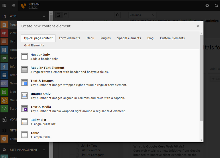 TYPO3 Core Element