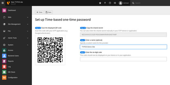 TYPO3v11 bringt in der Version 11.1 eine fortschrittliche, sichere, einfach zu verwendende und anpassbare MFA-Funktion. Wenn ein Admin einen MFA-Anbieter aktiviert hat, können Backend-Clients diesen als zweite Authentifizierungsmethode für ihren Login-Prozess nutzen. Übliche Anbieter sind z.B. Time Sensitive One Time Secret Phrase (TOTP), Counter Based One Time Secret Phrase oder WebAuthn.